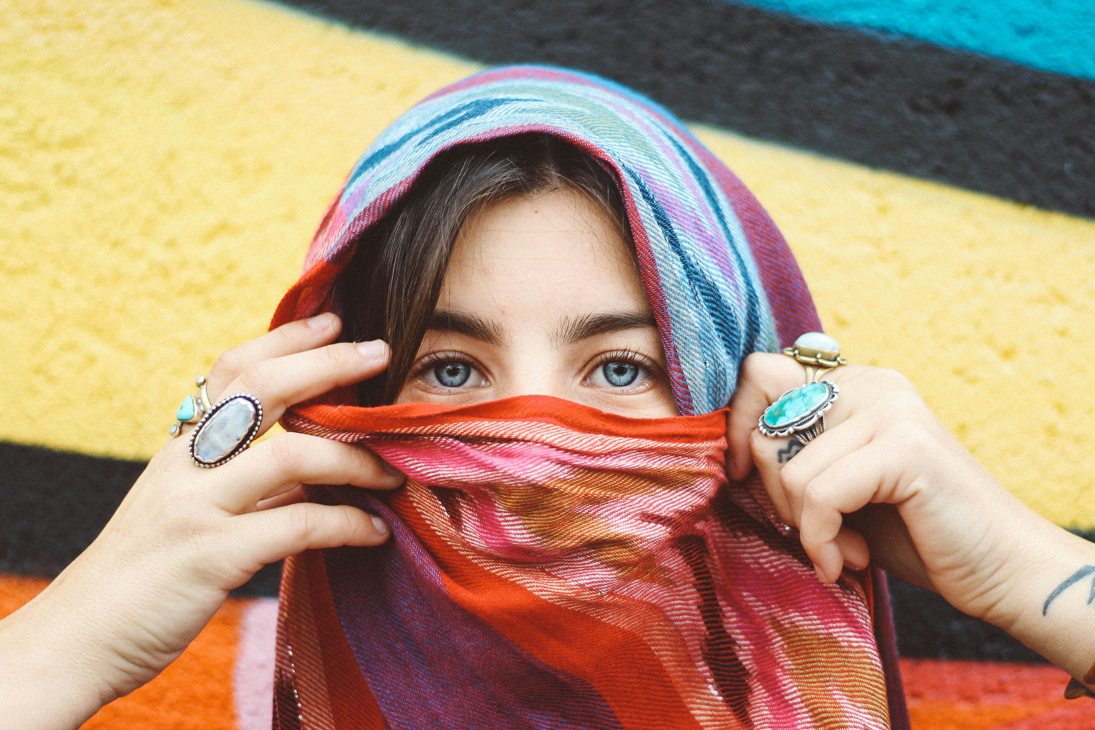 女人,女人,墻壁,顏色,顏色,圍巾,眼睛,戒指,肖像,模型,安娜貝,安娜貝