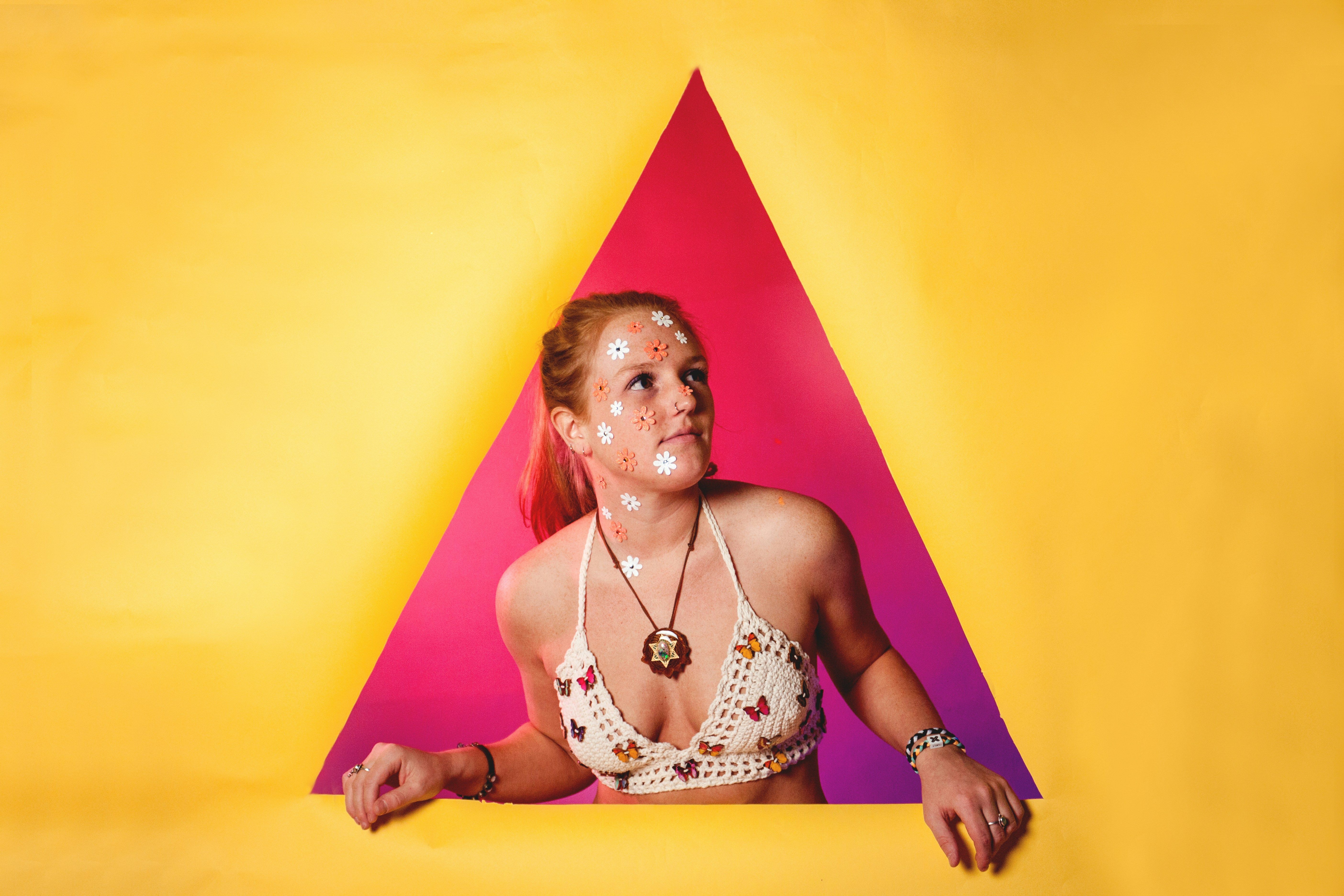 女人,女人,女孩,泳裝,比基尼,三角形,窗戶(hù),形狀,粉紅色,紅色,黃色,墻壁,背景,蝴蝶,油漆,臉部油漆,紫色,肖像,臉,頭發(fā)