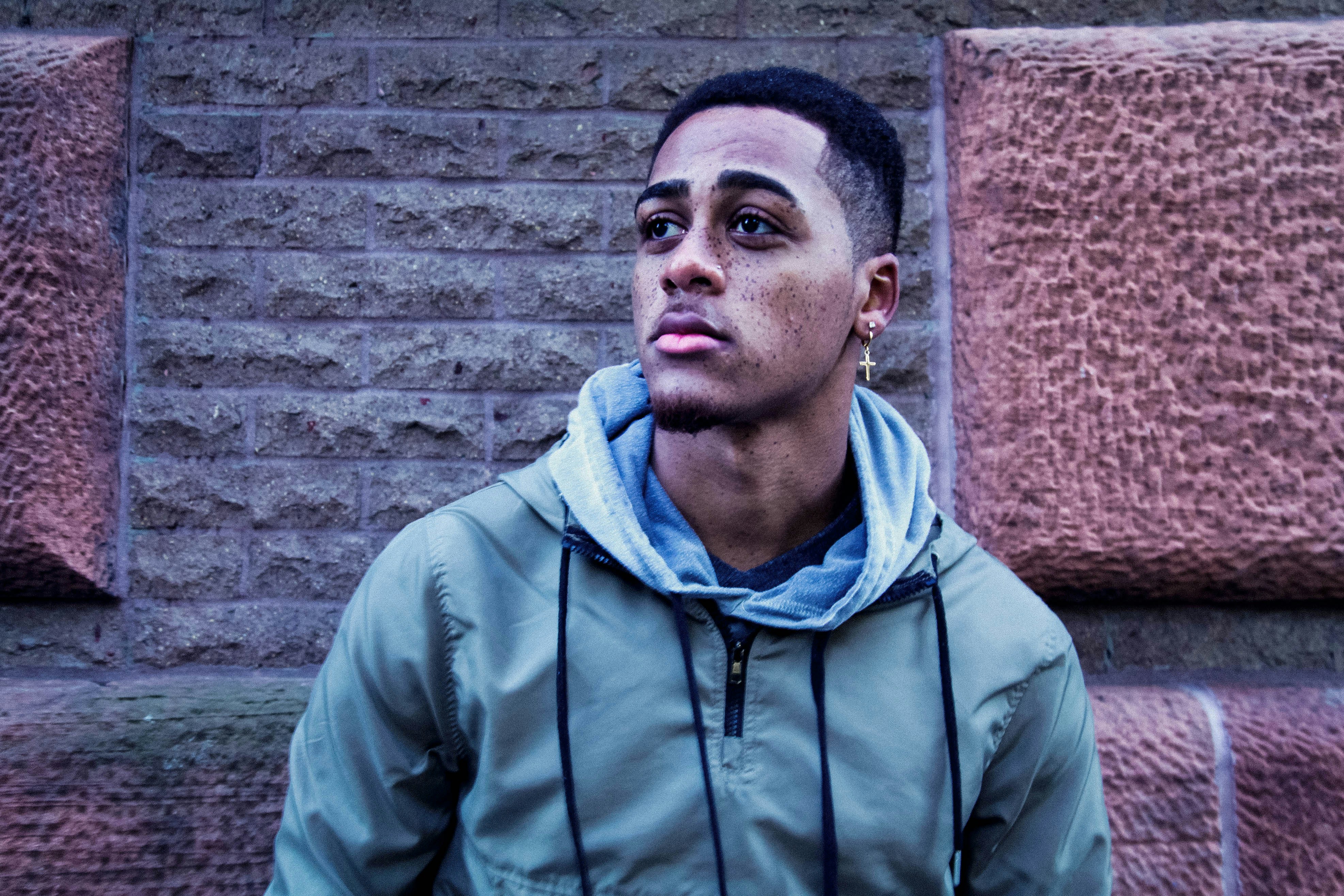 男人,男人,肖像,模特,非洲裔美國(guó)人,墻,肌理,混凝土,城市,城市,連帽衫,時(shí)裝,街頭服飾,發(fā)型,形狀,雀斑