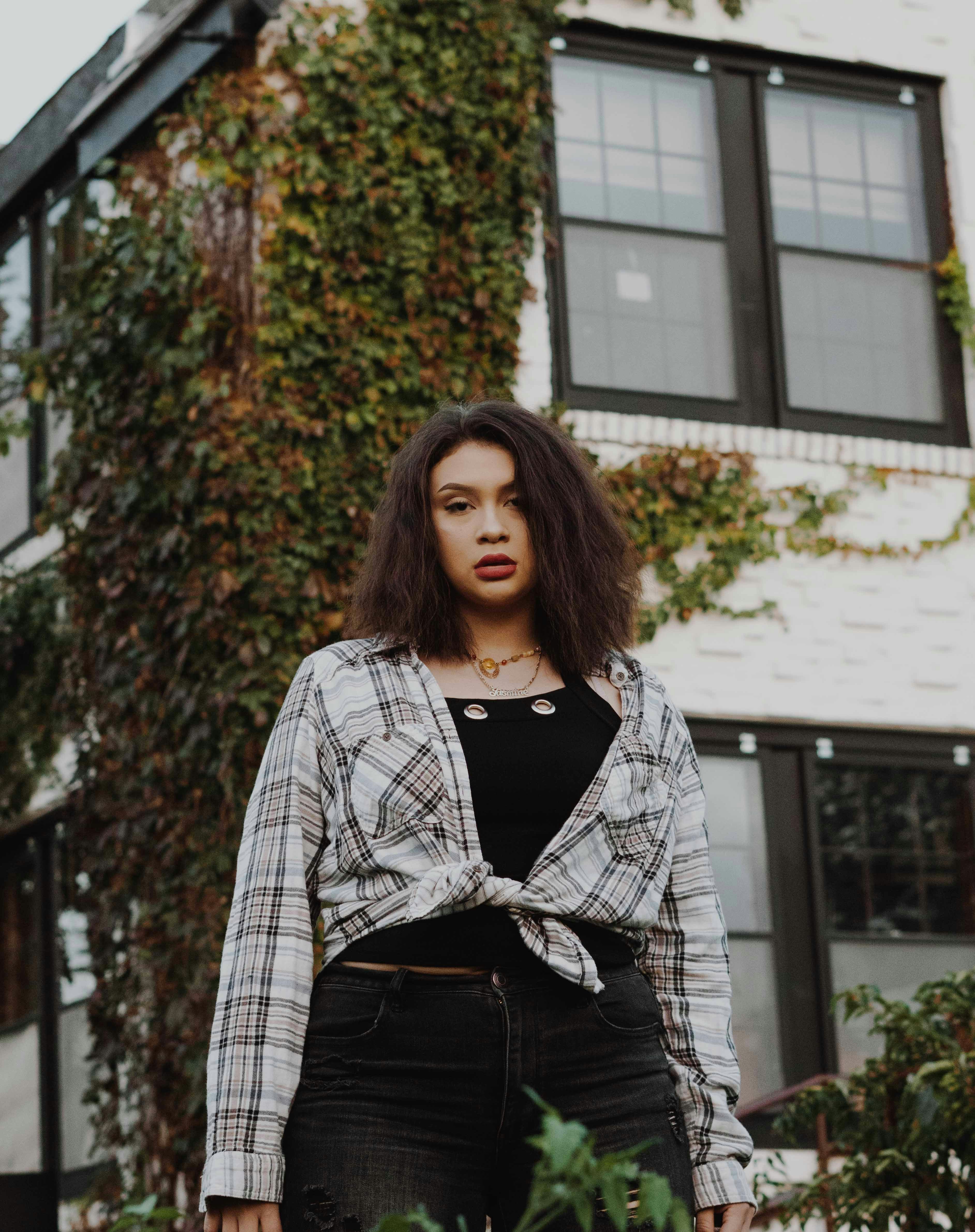 服裝、女人、溫室、時尚、女孩、服裝、植物、人、成年人、女士、深色皮膚、苗圃、自然、放松、花園、條紋、秋天、指甲油、瘦削、深色頭發(fā)