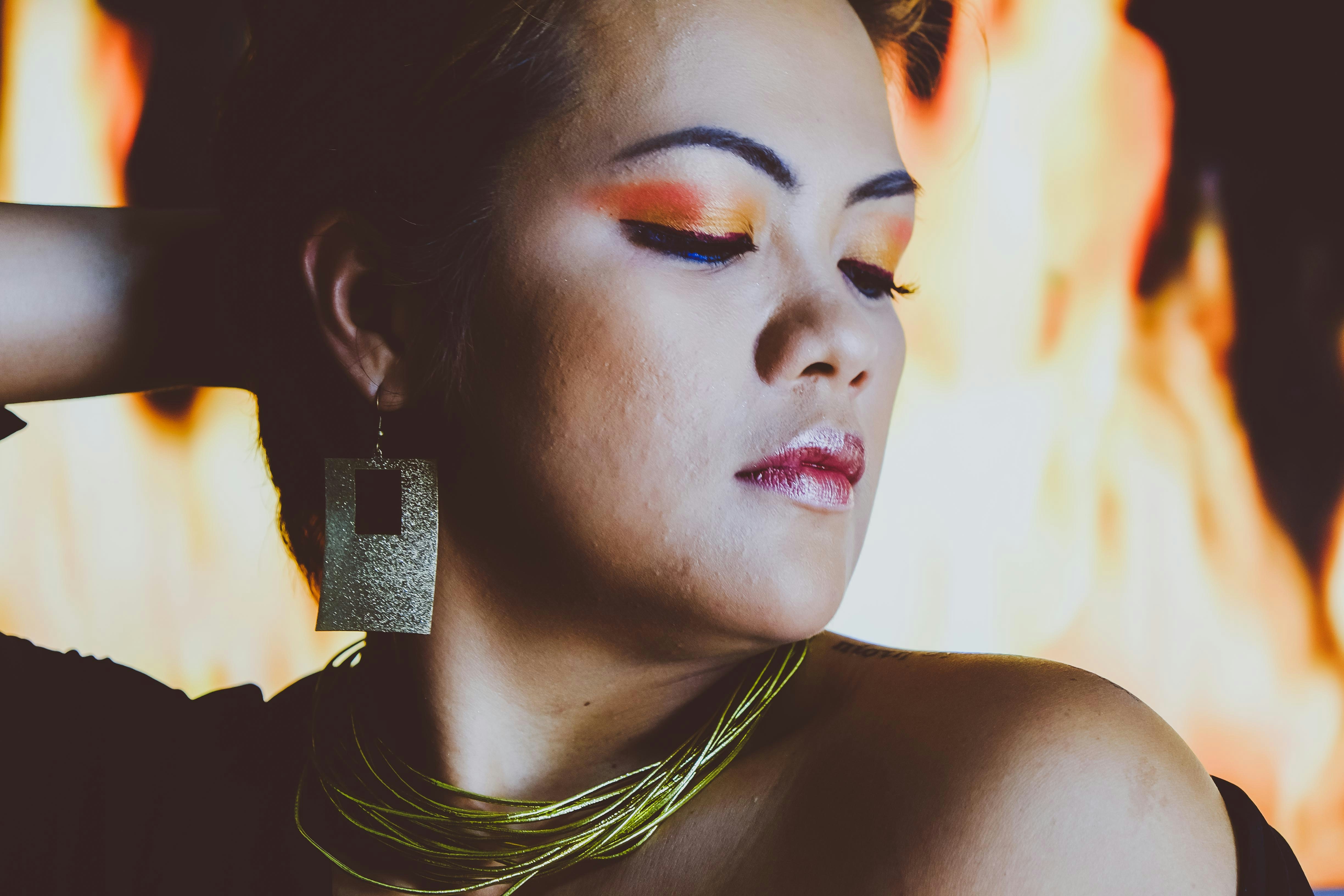 化妝,模特,肖像,化妝,面部,珠寶,自信,攝影,化身,概念,肖像攝影,戲劇,元素,火焰