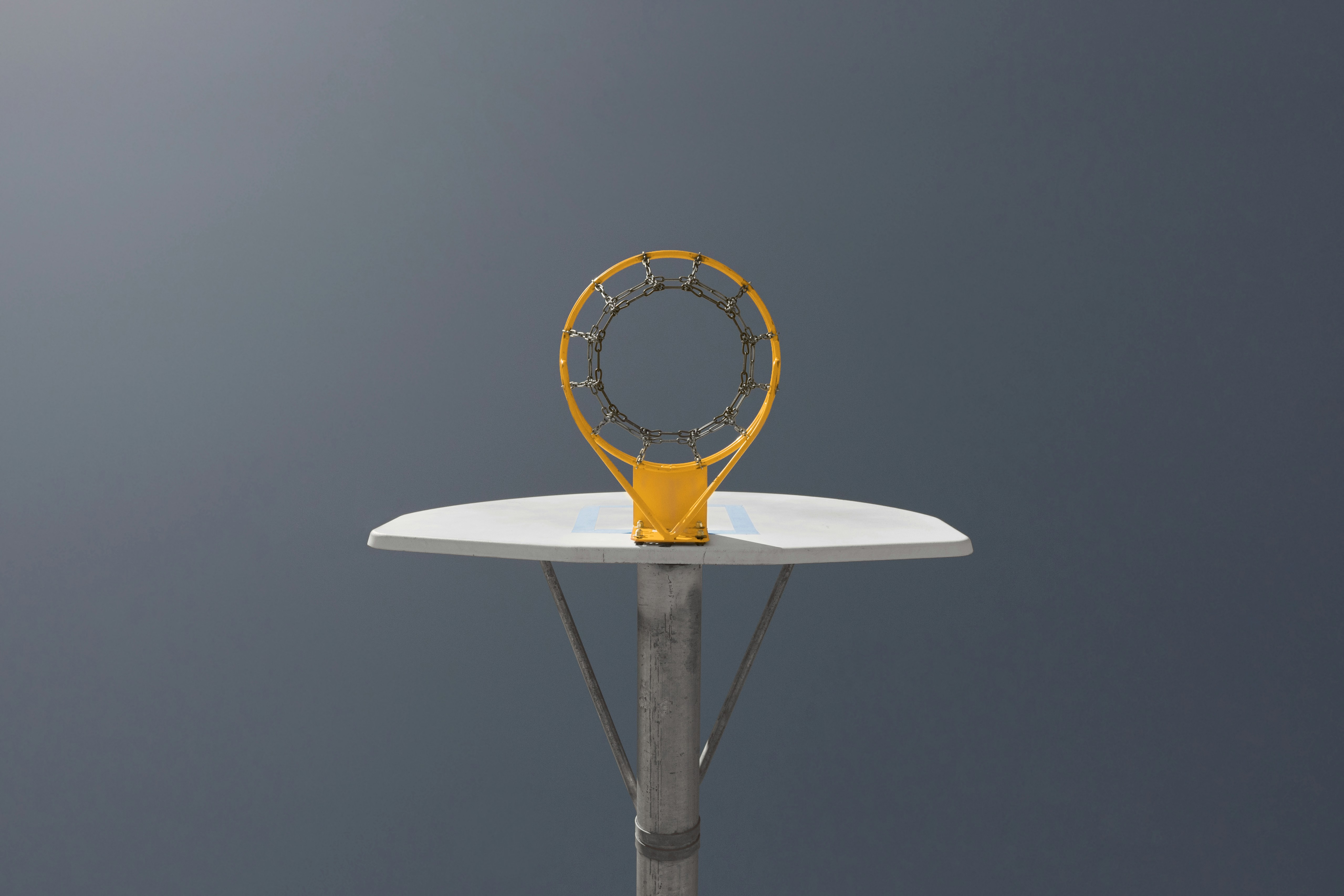 籃球、籃圈、場地,從下面看,籃、板、現(xiàn)代、極小、籃球圈、天空、戶外、游戲、鏈條、底部、平面、球類游戲、藍(lán)天、黃色