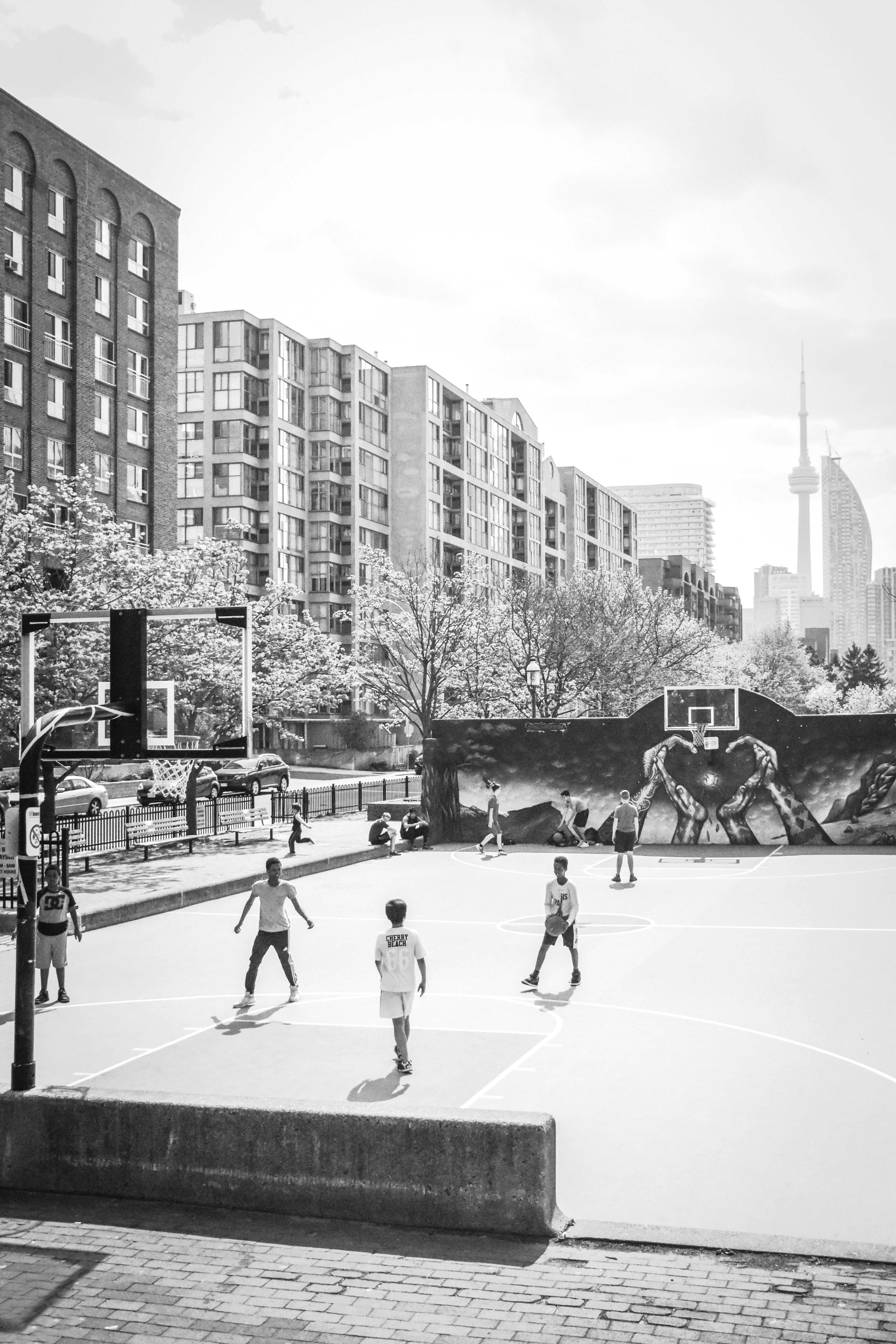 籃球、籃球、籃球、人、人、球場(chǎng)、城市、城市景觀、黑白、明亮、單色、城市、青年、青年、男性、男孩、男孩、男人、小孩