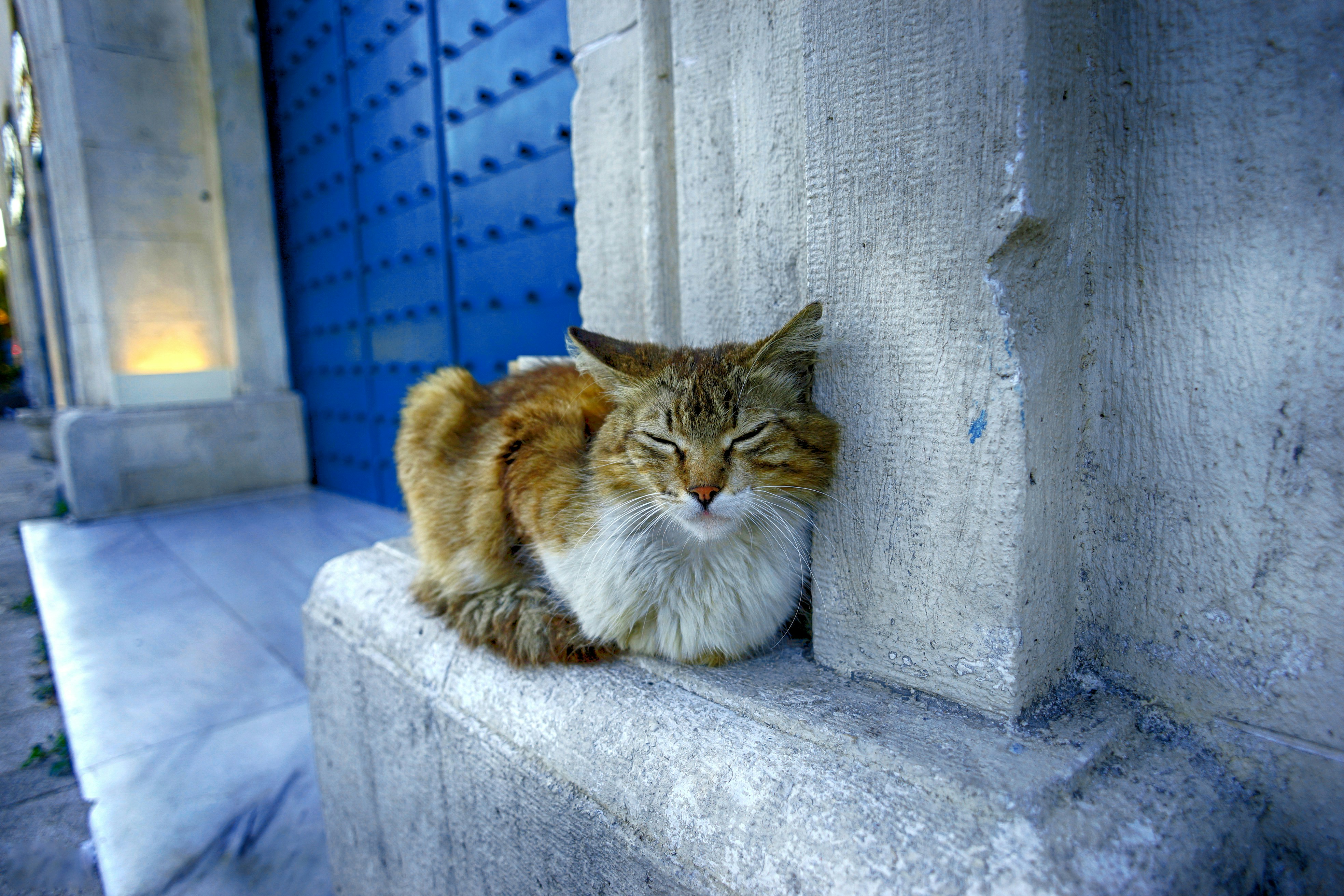 貓,門廊,門口,藍色門,大理石,貓,動物,胡須,姜貓,門廊,門