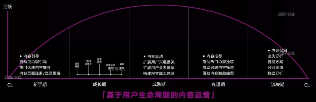 首先,按照目標(biāo)人群確定內(nèi)容方向,其次,從生產(chǎn)到加工、組織精細(xì)化內(nèi)容生產(chǎn)方式,最后,用戶生命周期全覆蓋的內(nèi)容推薦策略。