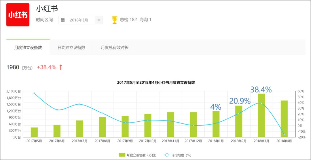 這種“倒退式”轉(zhuǎn)型初見成效,小紅書在 D 輪融資內(nèi)部信中給出一組數(shù)據(jù):截至 2018 年 5 月小紅書月度活躍用戶接近 3000 萬,是一年前的三倍。