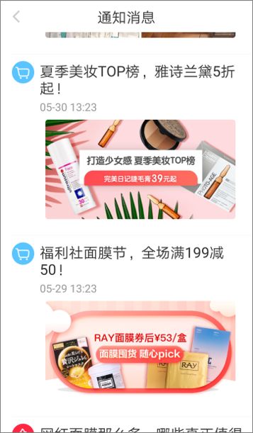 這一點(diǎn)主要體現(xiàn)在對商城活動(dòng)的推送上,例如「66 元券已到賬,券后更省」、「5 折起」、「全場滿 199 減 50!」