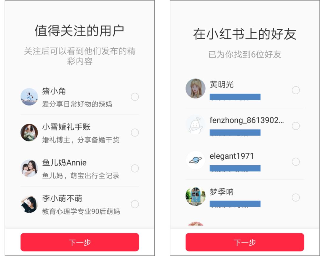 在新用戶注冊階段,小紅書設(shè)置了「三道推薦機(jī)制」。