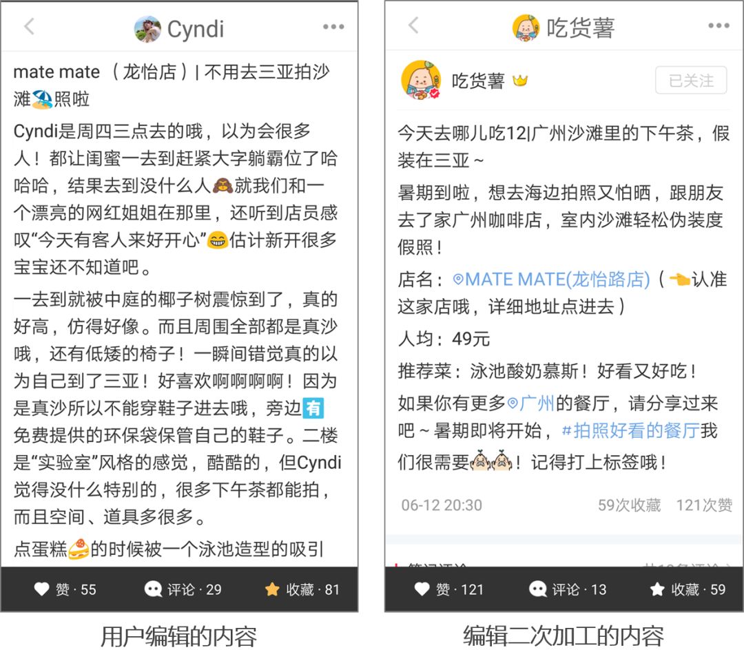 通過對比用戶生產(chǎn)的內(nèi)容與編輯加工后的內(nèi)容,我們可以看到,原作者的筆記偏向于記錄生活。而編輯加工后的內(nèi)容,則直接提取了重要信息,讓閱讀筆記的用戶快速 get 到想要的重點(diǎn)。