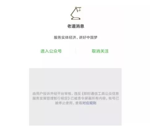 什么是敏感內(nèi)容,其實(shí)你我都不知道什么是敏感內(nèi)容,但是你的賬號(hào)被封了就是敏感內(nèi)容。比如王五四,隔三差五就被封,比如連馬化騰都贊賞過的公眾號(hào)老道消息也是寫著寫著就被封了。