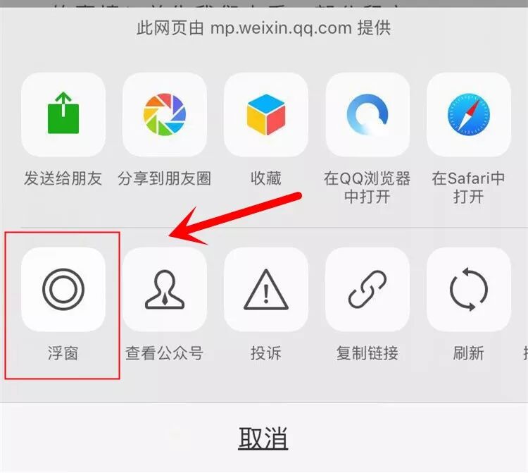 微信文章浮窗功能上線,原文章置頂按鈕取消。