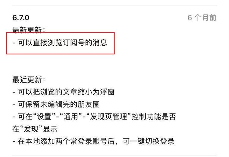 微信6.7.0版發(fā)布,訂閱號(hào)信息流版面第一次露面。