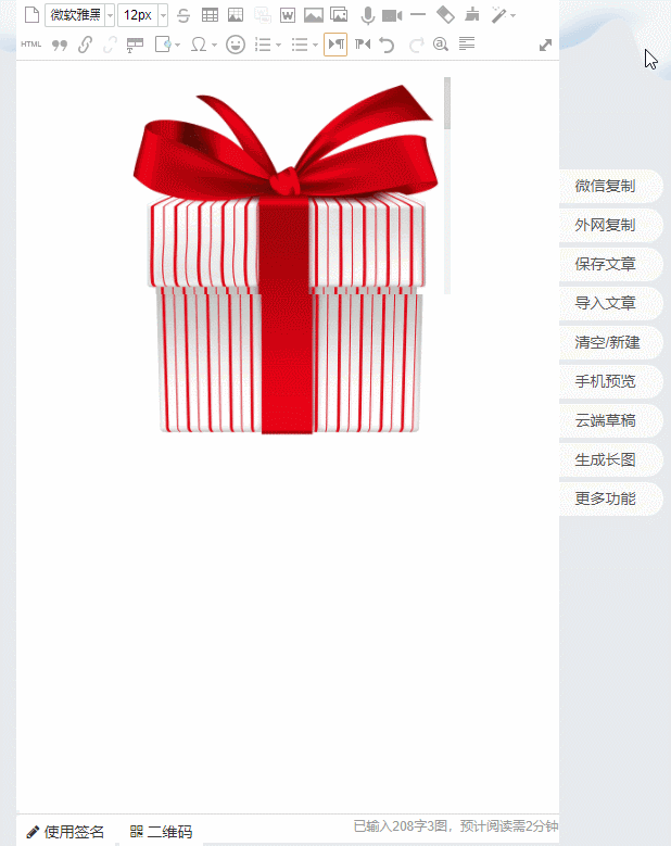 樣式教程:進入HTML模式復制所有代碼,新建文本的粘貼代碼,替換文字,復制替換后的代碼粘貼至編輯器,還可以直接點擊樣式更換配色。