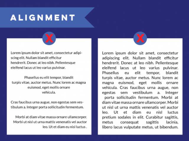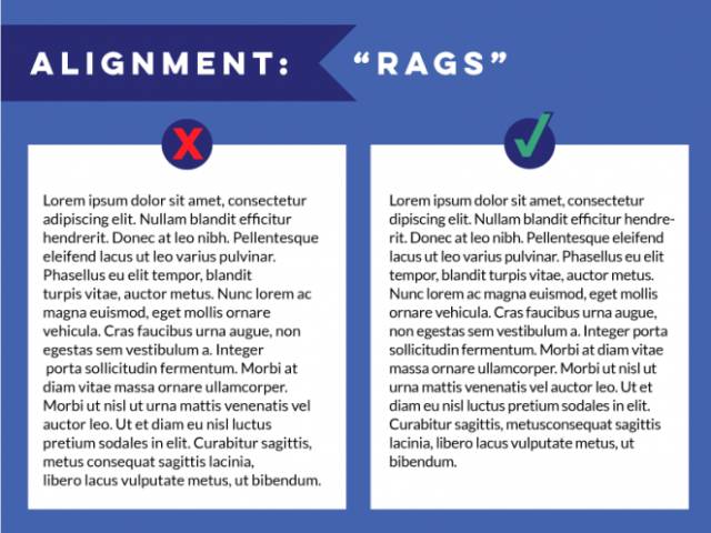 設(shè)計(jì)原則中,對(duì)齊是最重要的幾項(xiàng)之一。對(duì)齊會(huì)讓文字排列有序而合理,視覺(jué)上統(tǒng)一而舒適。不同的對(duì)齊方式混合在一起會(huì)產(chǎn)生隨機(jī)的間距,難看且閱讀困難。