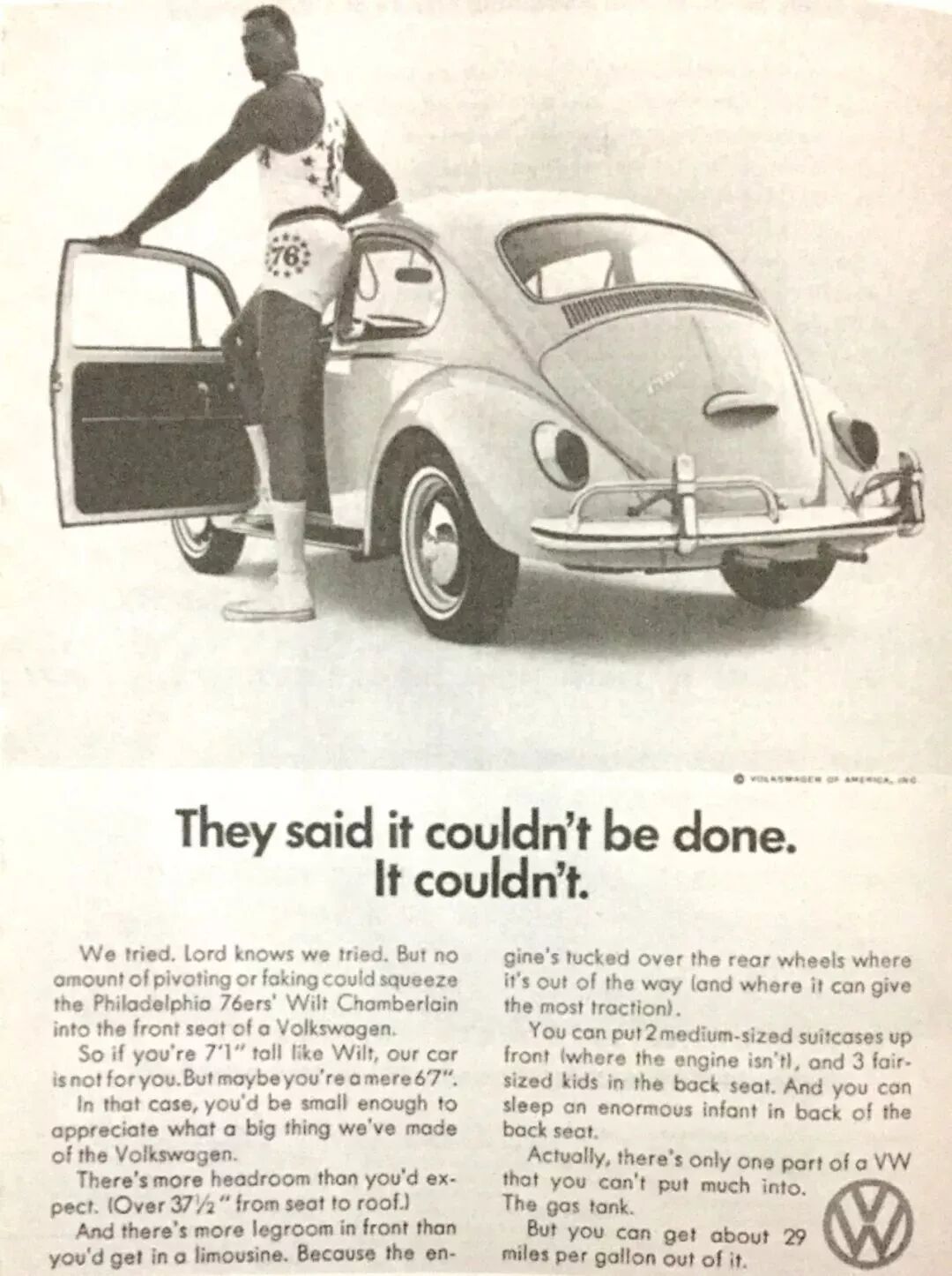 但是,想把費(fèi)城76人隊(duì)的張伯倫塞入VW前座,真的不太可能。