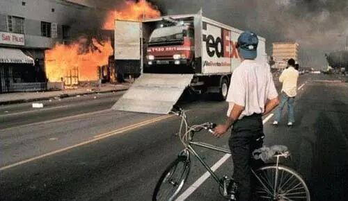 聯(lián)邦快遞廣告:火災(zāi)出現(xiàn)的時候,聯(lián)邦快遞把消防車給快遞來了,充滿了戲劇性。也同樣是突出了服務(wù)速度快。
