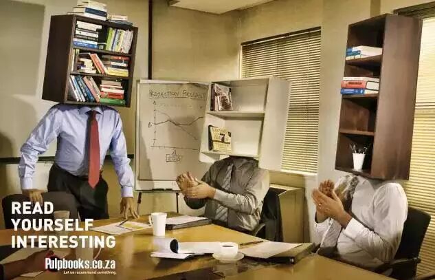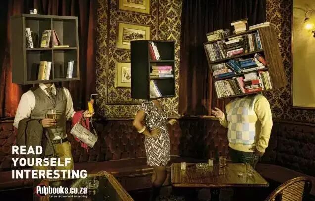 Pulp Books書店廣告:Read Yourself Interesting(通過閱讀把你變得有趣)??匆娺^,真是書架決定地位啊。