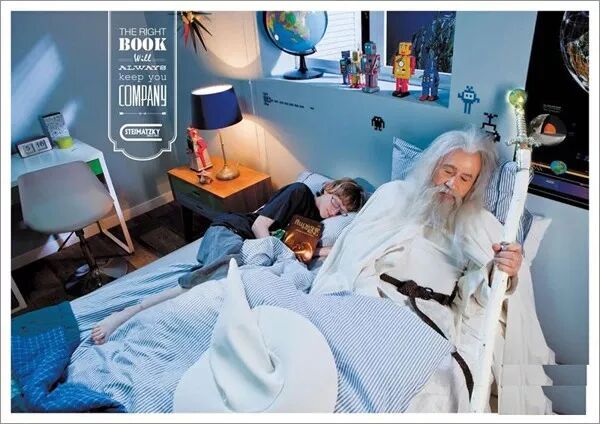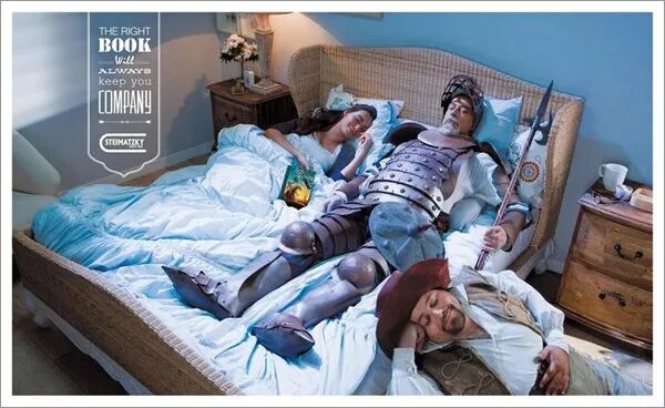 他們圍繞“一本好書,是你最好的陪伴”的主題,在廣告里讓《唐吉可德》、《魔戒》、《斯大林》、《福爾摩斯》、《The Monk Who Sold His Ferrari》、《pippi》這些書中的主角就睡在讀者身旁。