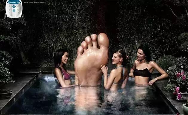 好運達足部按摩器廣告:將專業(yè)、舒適的產(chǎn)品訴求,直接就通過夸大畫面?zhèn)鬟_給了消費者。